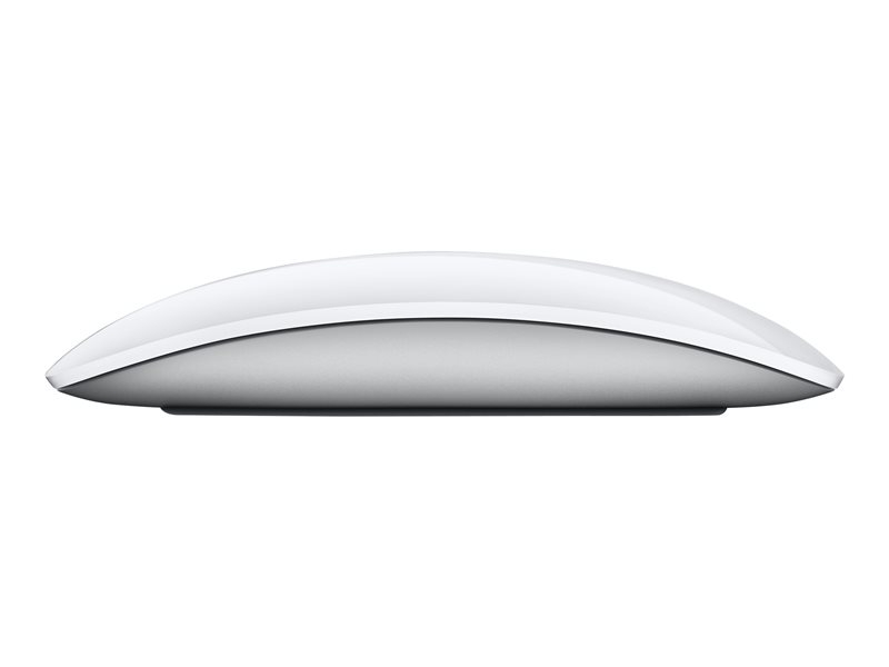 Magic Mouse - med den lave profil og helt glatte overside - er så slank og anderledes, at den giver dig en helt ny måde at komme omkring på din Mac. Du kan ikke lade være med at beundre det glatte udseende helt uden knapper. Og når du rører ved den, vil du straks mærke, hvor dejligt det er at have den i hånden. Men det er først, når du begynder at bruge Magic Mouse, at det hele falder i hak. Multi-Touch-området dækker toppen af Magic Mouse, og hele musen er knappen. Rul i alle retninger med en finger, skub med to fingre gennem websider og fotografier, og klik og dobbeltklik overalt. Indeni Magic Mouse er der en chip, som fortæller den, hvad du vil gøre. Derfor forveksler Magic Mouse ikke rulning med skub. Den ved endda, hvornår du bare hviler hånden på den.