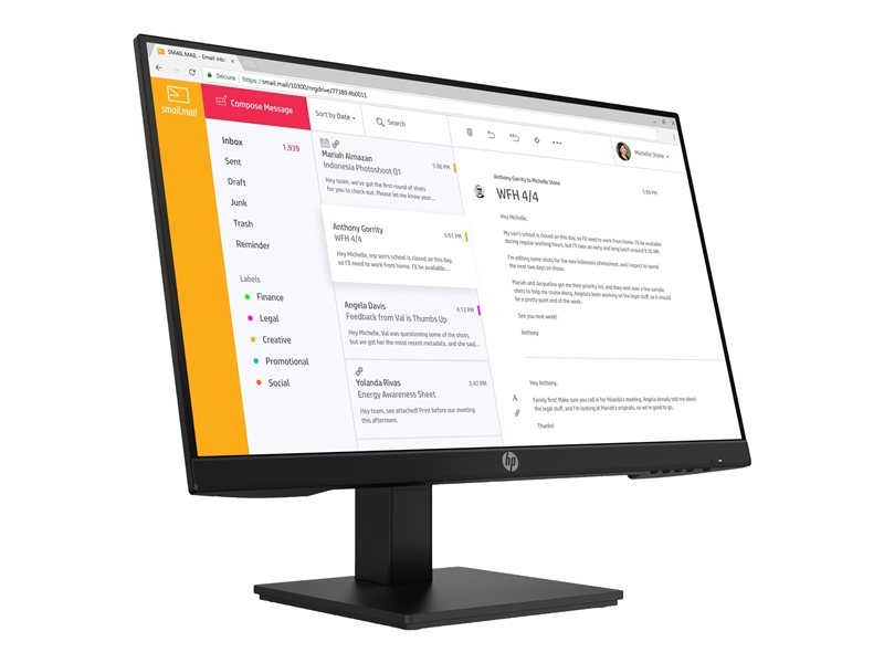 - Naviger hurtigt gennem dine dokumenter og regneark, og arbejd i flere programmer samtidig på denne Full HD IPS-skærm med en høj opløsning på 1920 x 1080 og en størrelse på 23,8 tommer diagonalt. Få behagelig stereolyd direkte ved skærmen til dit multimedieindhold.