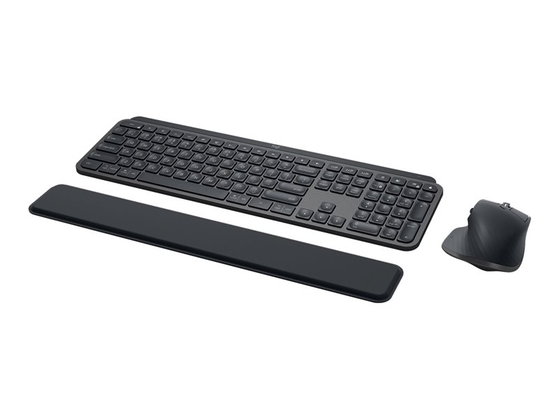 MX Keys-trådløst tastatur, Master 3S-trådløs mus og håndledsstøttekombination.